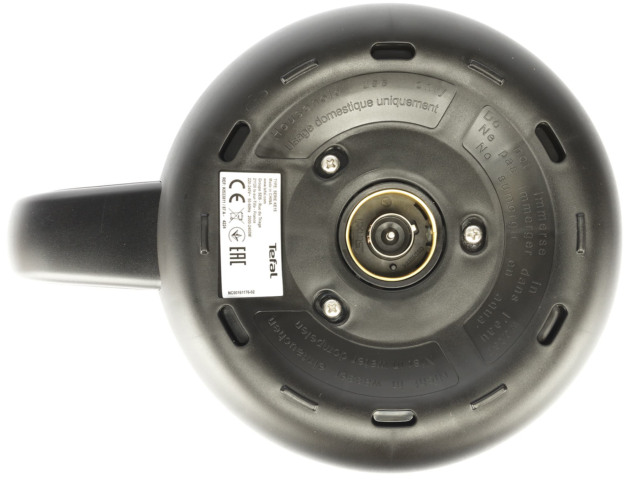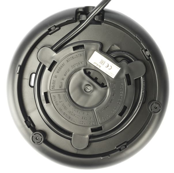 На дне чайника находится шильдик с краткой технической информацией о приборе. Контактная группа стандартной конструкции состоит из двух концентрических колец и центрального штыря. Производитель контактной группы — «тот самый» знаменитый Strix.