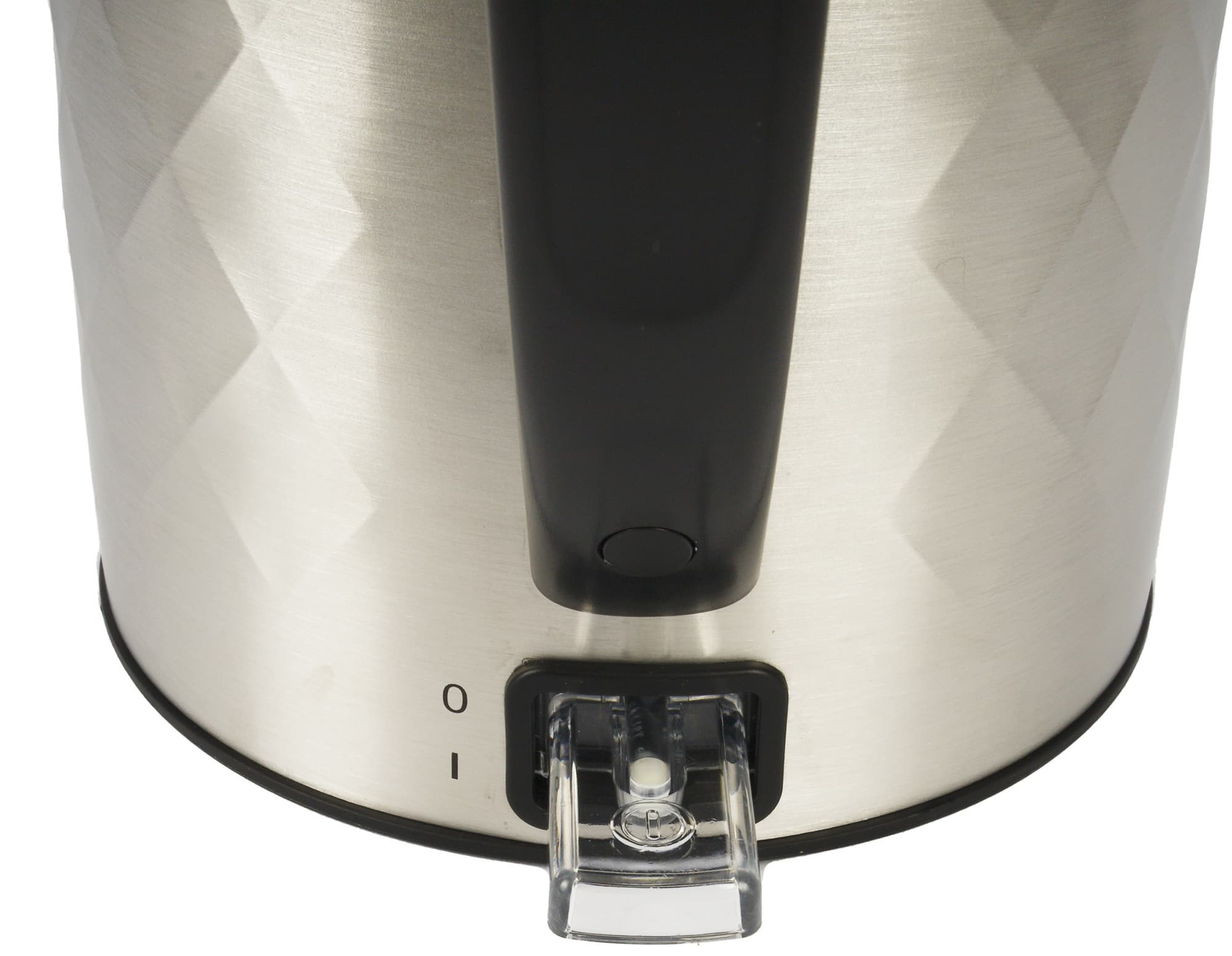 Под ручкой привычно расположена кнопка включения/выключения, изготовленная из прозрачного пластика. В кнопке находится светодиод белого цвета, позволяющий визуально отслеживать включение чайника.