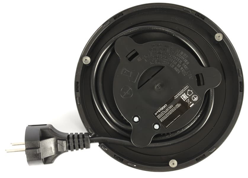 База снабжена отсеком для хранения излишков провода, также на дне базы можно увидеть наклейку, аналогичную наклейке на дне чайника.