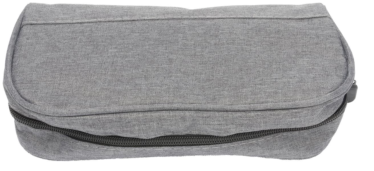 Открывается коробка сверх, внутри вложен серый тканевый дорожный чехол с внутренними кармашками. В него убраны насадки, в отдельной полиэтиленовой упаковке, шнур USB-С, сам прибор. Ткань чехла относительно влагоотталкивающая, мы плеснули на нее водой, и сумка выстояла, замачивать для проверки мы не стали Прошит чехол аккуратно, молния на нем работает легко и без перебоев. Сам чехол снаружи и внутри имеет легкий, не отталкивающий запах.