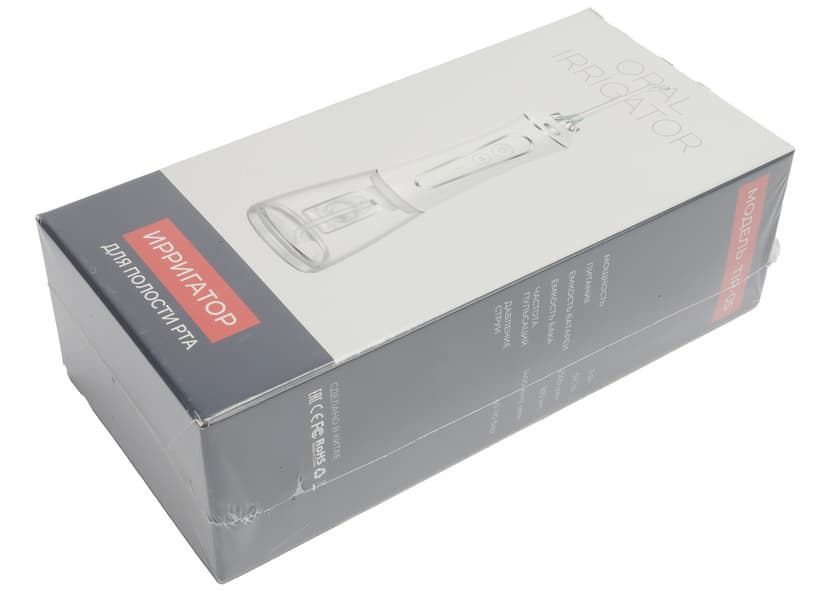 Модель TIR-05 выглядит, как и положено приличному ирригатору. Она аккуратно упакована, коробку приятно держать в руках, ее неброский дизайн успокаивает, на нее вынесены все необходимые данные. Перед нами просто ирригатор.