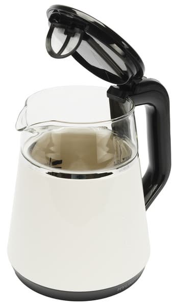 Если минимализм и настолько простое управление, как у чайника выше, это для вас, то Hyundai HYK-G3013 имеет 5 температурных режимов (40, 70, 80, 90, 100 градусов), функцию поддержания температуры и двойные стенки: по сути, это чайник-термос. А объем такой же: 1 литр, только рисок на корпусе нет, но это именно особенность чайников, которые помогают сохранить тепло.