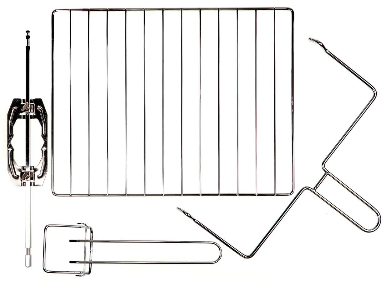 Хотя обзору этого прибора уже несколько лет, он успешно продается и стоит относительно недорого, учитывая его неоспоримые достоинства. Это редкий случай, когда мини-печь невысокой стоимости и очень компактного размера (объем камеры 20 л) имеет функцию конвекции, большой диапазон температур, внутреннее освещение и возможность использовать печь в качестве роторного гриля: это позволяет комбинация нагрева тэнов, наличие вертела, обдува и разогрев до 250 °C.