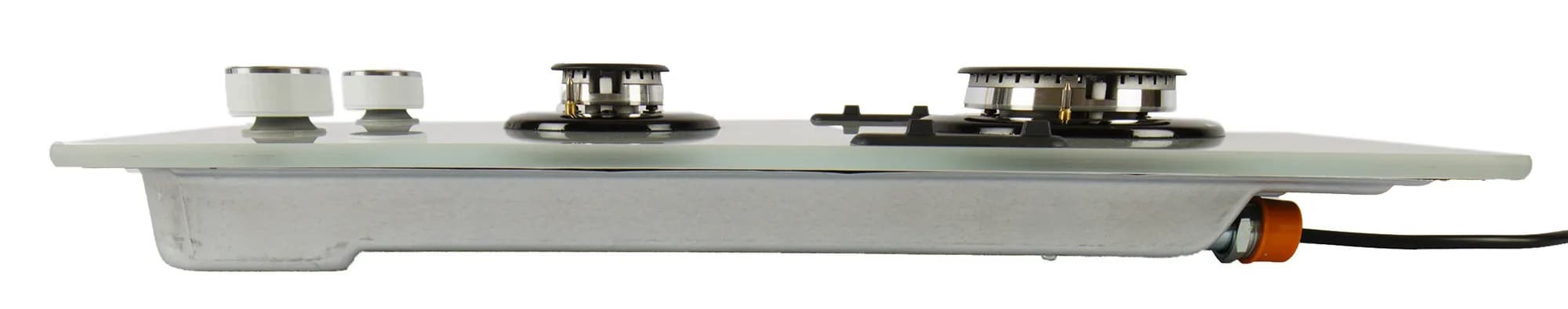 Очень простая, удобная, компактная и легкая в уходе стеклянная бюджетная варочная панель с газ-контролем и электроподжигом подключается и к магистральному газу, и к баллону. Все необходимые крепежи для встраивания в столешницу и уплотнительная лента есть в комплекте, поэтому монтаж прибора не представляет трудностей, однако на нем можно готовить и без встраивания, если оно невозможно (например, в съемном жилье). В комплекте есть жиклеры на баллонный газ, и мы тестировали эту модель с баллоном.