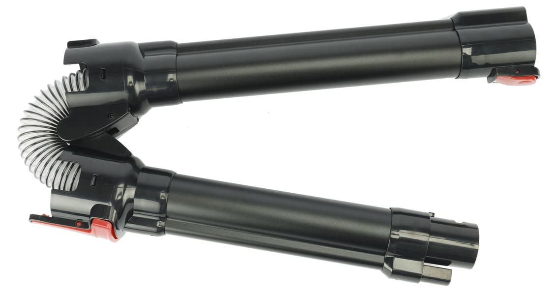 Трубка изгибается почти под прямым углом, что позволяет увеличить использовать электронасадки в труднодоступных местах. Для использования там обычных насадок в комплект пылесоса входит гибкая гофрированная трубка длиной 50 см. Для ухода за одеждой и при обработке разных углов, щелей и закоулков она очень удобна.