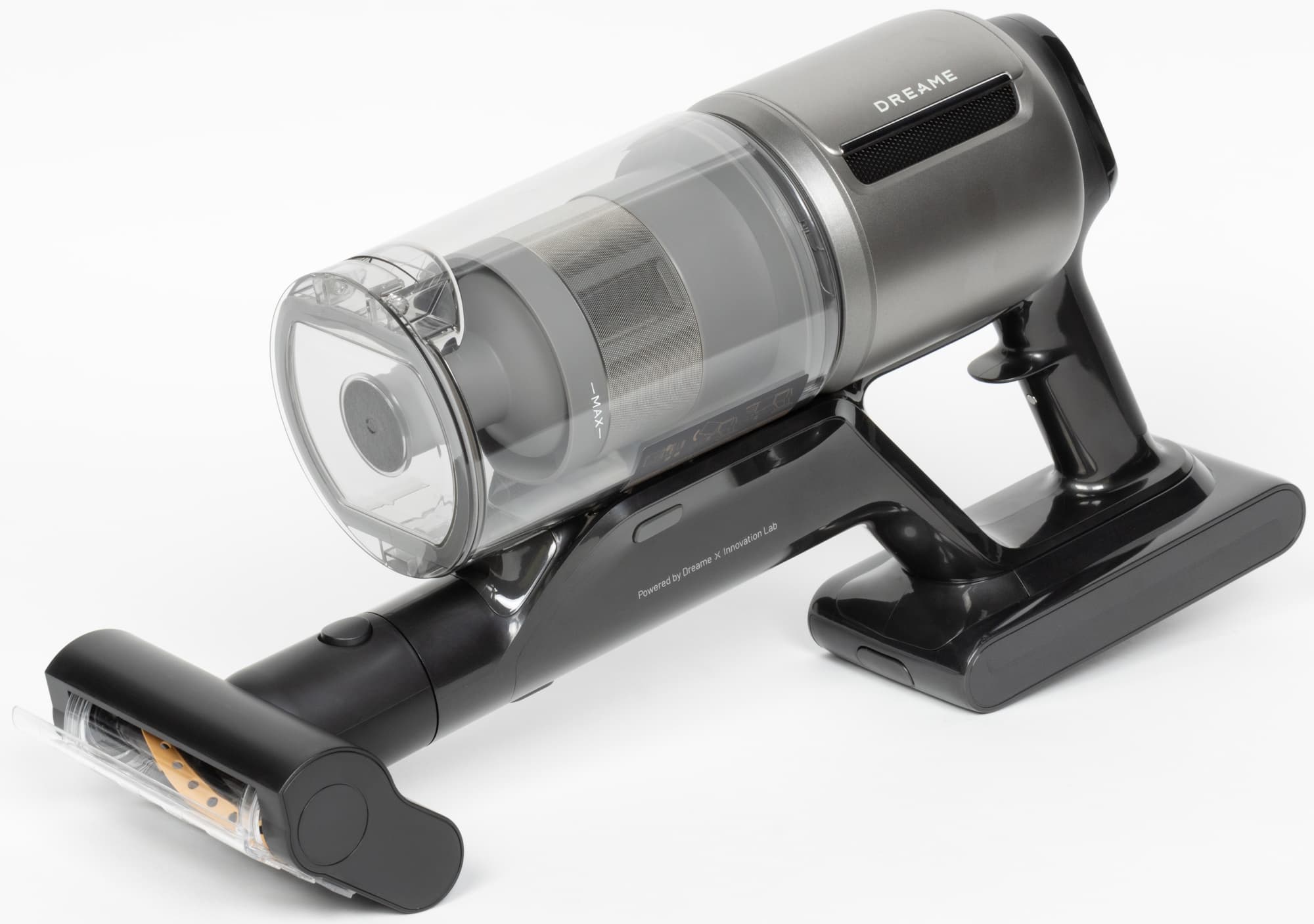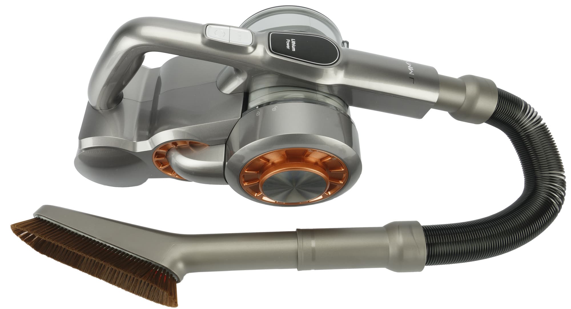Производитель заявляет мощность всасывания до 310 аВт, наши измерения показали несколько иное, но тем не менее пылесос оказался действительно одним из лидеров по силе всасывания в своей категории. Аккумулятор у модели съемный, но его нельзя заряжать независимо: подключать зарядное устройство нужно напрямую к пылесосу.
