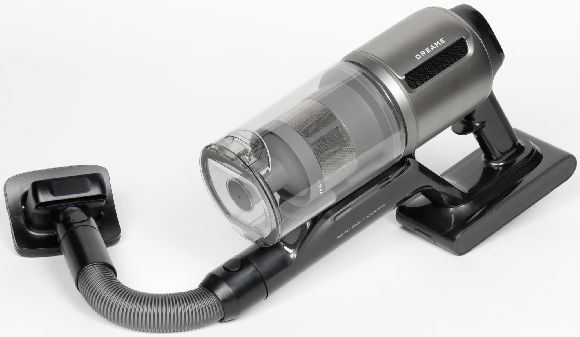 Для мягкой мебели и матрасов предусмотрена моторизованная мини-турбо-щетка. Для прочих нужд есть еще несколько насадок, в том числе для очистки хрупких предметов. И вишенка на торте — насадка для вычесывания питомцев. У нее есть кнопка, при нажатии на которую собранная шерсть улетает внутрь пылесоса.