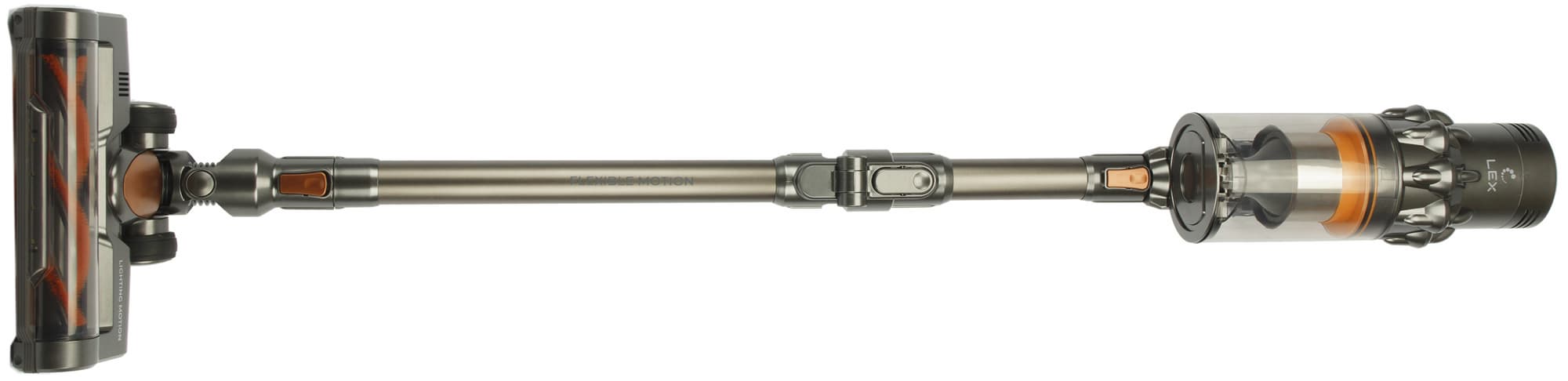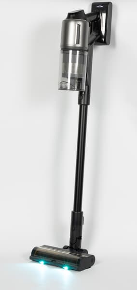 Существенно более дорогая модель, оснащенная станцией самоочистки для сбрасывания пыли и мусора из контейнера-циклона в установленный в базу мешок. Пылесборник не требуется опустошать вручную: достаточно установить пылесос на базу и нажать кнопку самоочистки. Во время процедуры прочищаются также и фильтры пылесоса, поэтому он требует меньше расходников и вообще внимания к себе вне работы. Кроме того, в комплект входит второй сменный аккумулятор, установив который можно продлить время уборки вдвое. Например, пылесосить на самой высокой мощности не 12,5 (таков результат измерений для одного аккумулятора), а целых 25 минут. Но обращаем внимание, что максимальная мощность всасывания этой модели в соответствии с нашими измерениями примерно равна средней мощности у модели предыдущей — Lex LXVCS 7073.