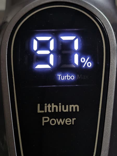 У Jimmy H9 Pro три скорости работы (уровня мощности), и четыре режима: автоматический (но датчика пыли нет, поэтому суть авторежима не очень ясна), Eco, Turbo и Max. При работе самой высокой скорости пылесос постепенно понижает силу всасывания до среднего уровня, если уровень заряда аккумулятора падает до 20%.