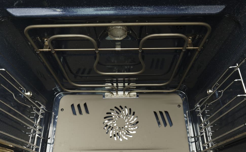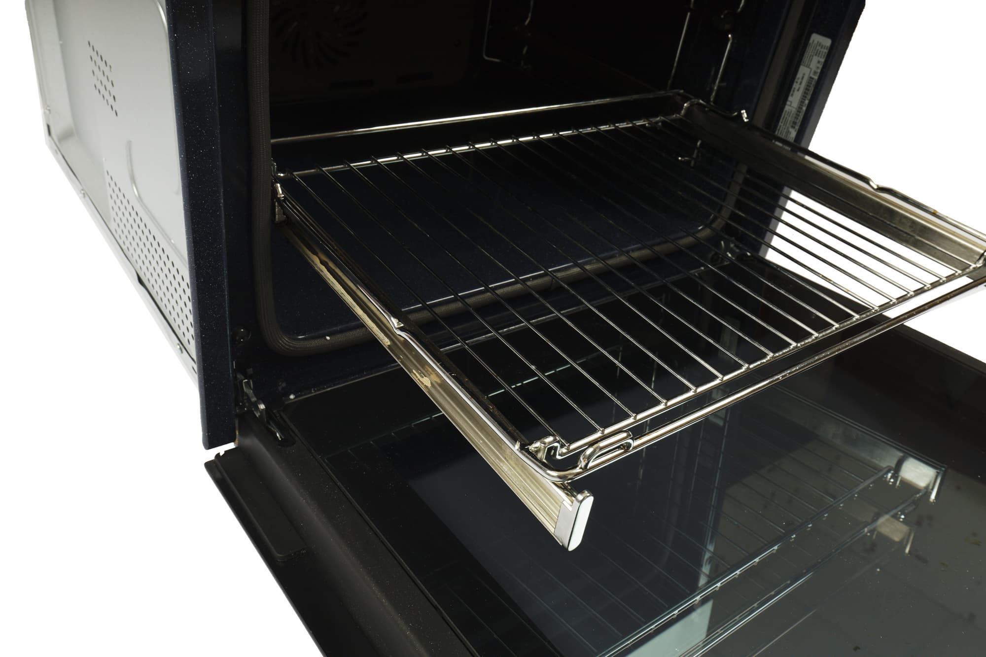 Духовки серии Bespoke, к которой принадлежит протестированная модель, отличаются технологией Dual Cook, позволяющей использовать две части духового шкафа независимо друг от друга — правда, с определенными ограничениями. Так, в основное меню этой духовки есть целых 40 автопрограмм, но если активировать функцию приготовления на разных уровнях, до доступными оказываются только 10: по 5 сверху и снизу. Для такого двойного приготовления в рабочей камере установлены два вентилятора конвекции с кольцевыми нагревателями и разделяющий две зоны поддон.