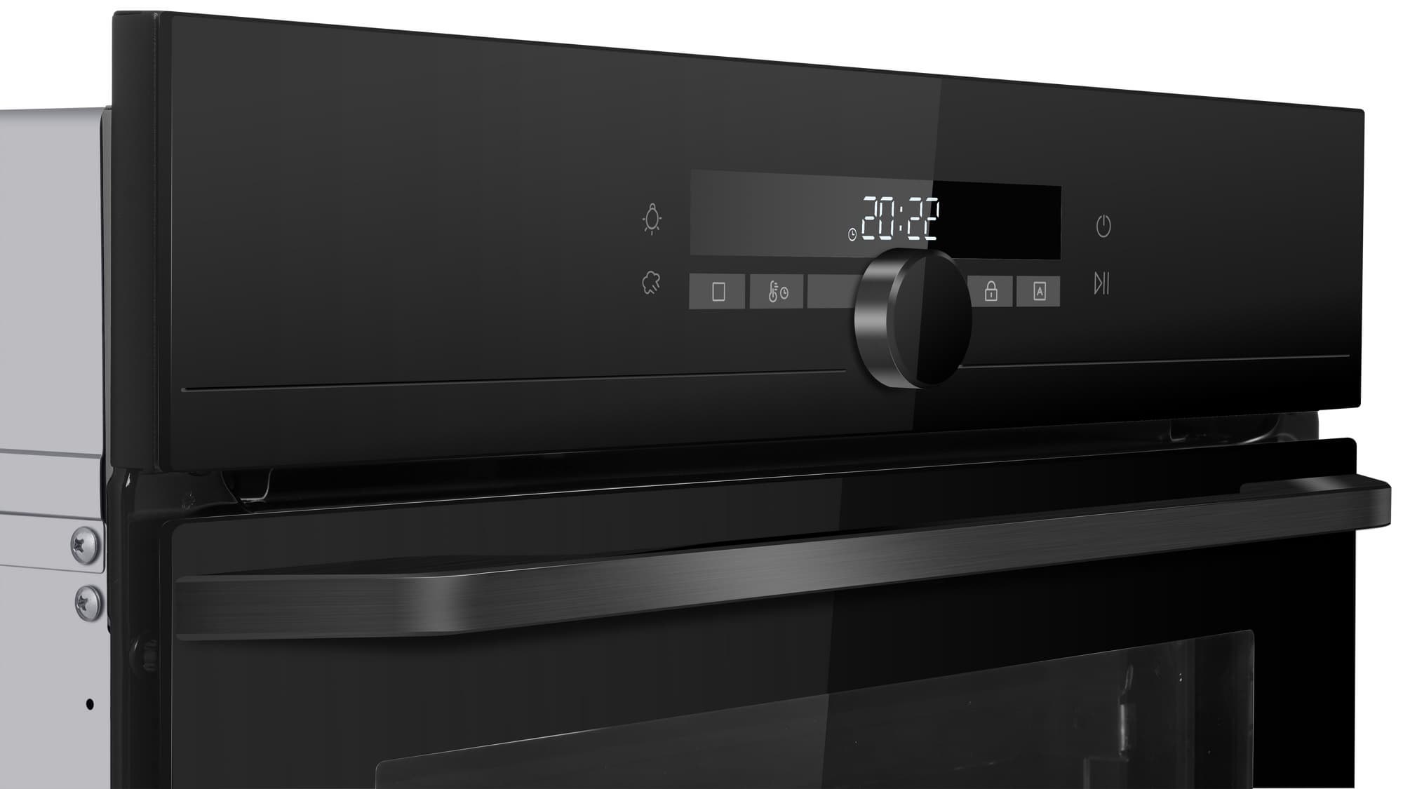 Модель имеет все классические функции современной духовки: гриль, конвекцию, несколько автоматических режимов (пицца, размораживание, очистка паром и др.), индикатор достижения заданной температуры, звуковой таймер, который можно использовать отдельно от нагрева — например, как будильник. Время и длительность приготовления блюда можно задать при помощи таймера, панель управления в целях безопасности легко блокируется.