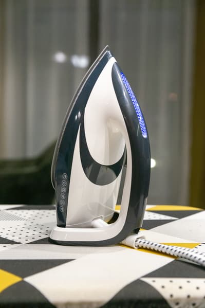 Популярная модель, которая спустя два с половиной года после нашего обзора все еще активно продается в РФ. Несмотря на некоторые вопросы к работе прибора, он понравился тестировщикам. Фишка модели — запатентованная форма подошвы утюга, похожая на скейтборд: за счет закругленного задника гладить можно и вперед, и назад, не опасаясь появления заломов и складок, и мы действительно оценили удобство такой конструкции во время практических тестов. Кроме того, у этой модели самый большой резервуар для воды объемом 2 л.