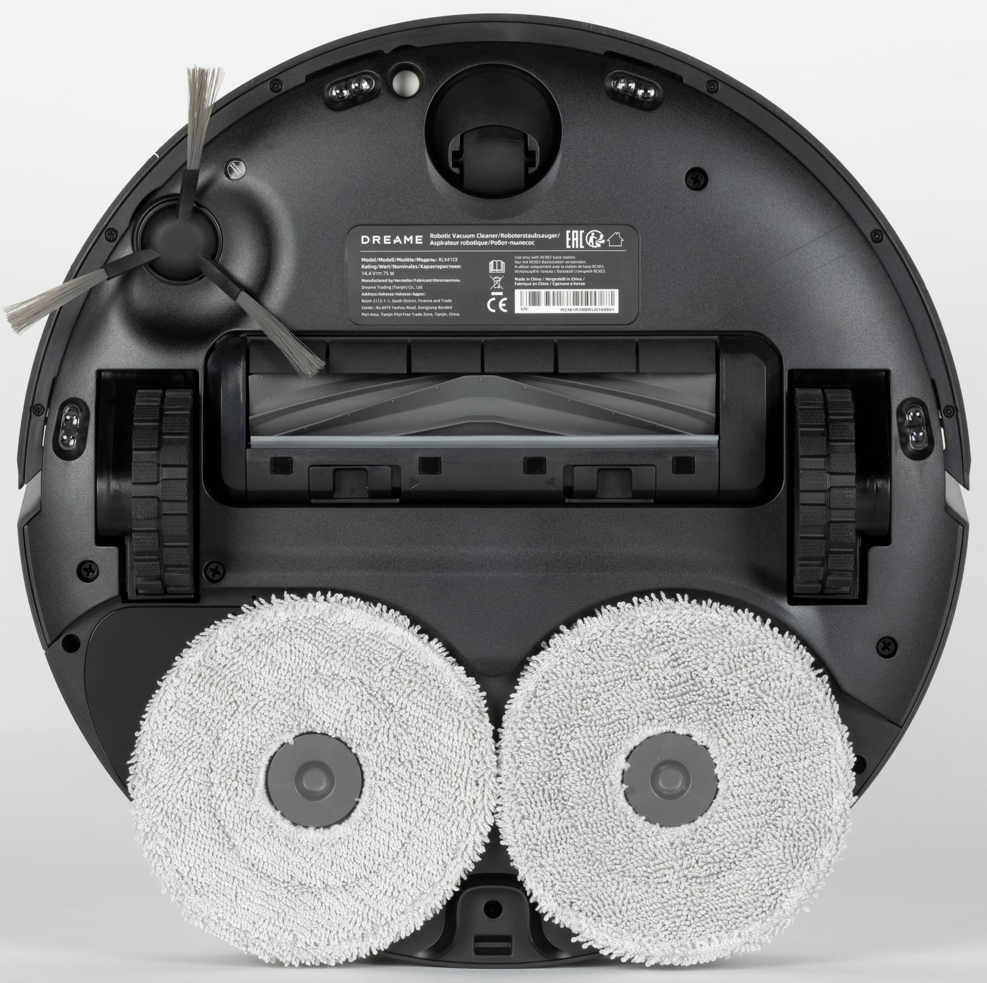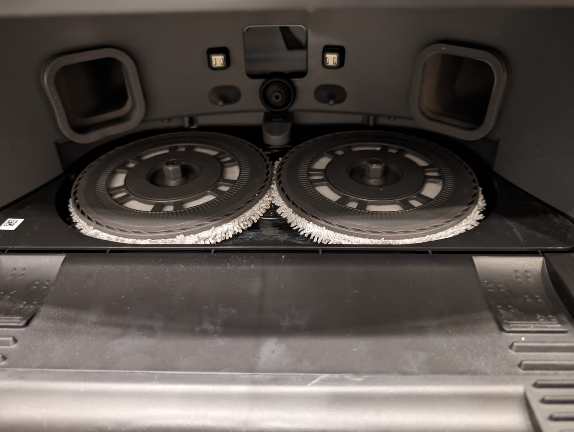 Диски устанавливаются на магнитных креплениях с датчиками: пылесос определяет их наличие и включает соответствующий режим, если они на месте. Мопы смачиваются водой и моющим средством, из резервуара в базе.