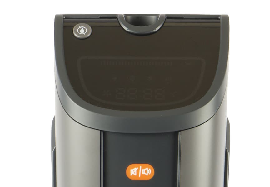 Тоже модель с голосовым помощником (его можно отключить), только работать автономно она может вдвое меньше, чем предыдущая. Насадка для пола тут не снимается, но вся конструкция промывается и просушивается после использования вентилятором на док-станции. Компоновка модели такая же, как у большинства аккумуляторных моющих пылесосов: два съемных резервуара, один для чистой воды, другой — для отработанной жидкости и грязи. В щетку встроена УФ лампа, закрытая решеткой. ИК датчик отключает излучение при отрыве пылесоса от пола, так что для зрения использование пылесоса безопасно.