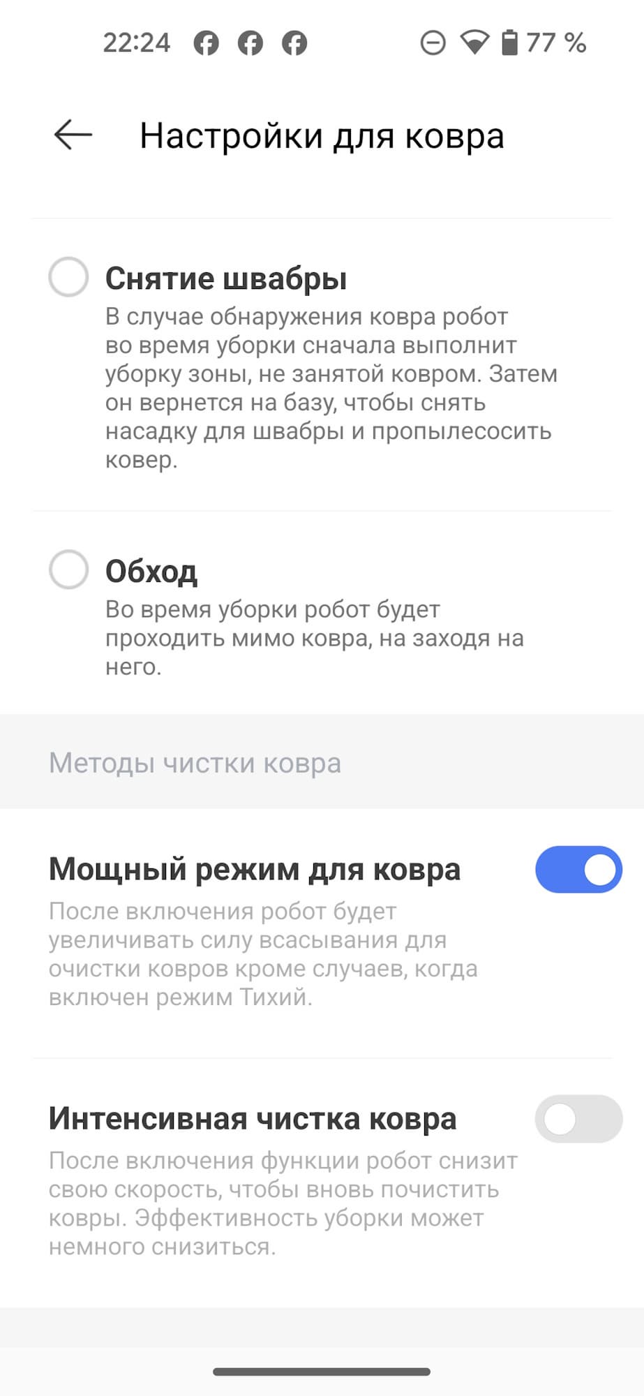 Система распознавания поверхности помогает роботу бережно относиться к ковровым покрытиям, поведение робота в таких случаях можно точно настроить в приложении. Например, заезжая на ковер, пылесос приподнимает швабры или вернется на базу, снимет их и продолжит уборку в сухом режиме.