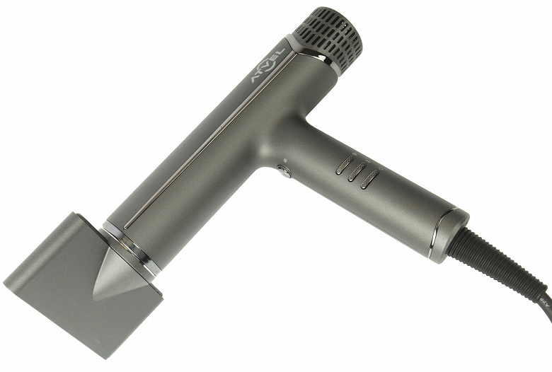 Фен позволяет настроить температуру воздушного потока от комнатной до 120 градусов с шагами 60 и 90 градусов, имеет три скорости обдува и функцию подачи холодного воздуха. За дорогой премиальный дизайн наша редакция наградила эту модель особым знаком, а собственно практические испытания фен прошел блестяще, включая отключение при перегреве: система сработала.