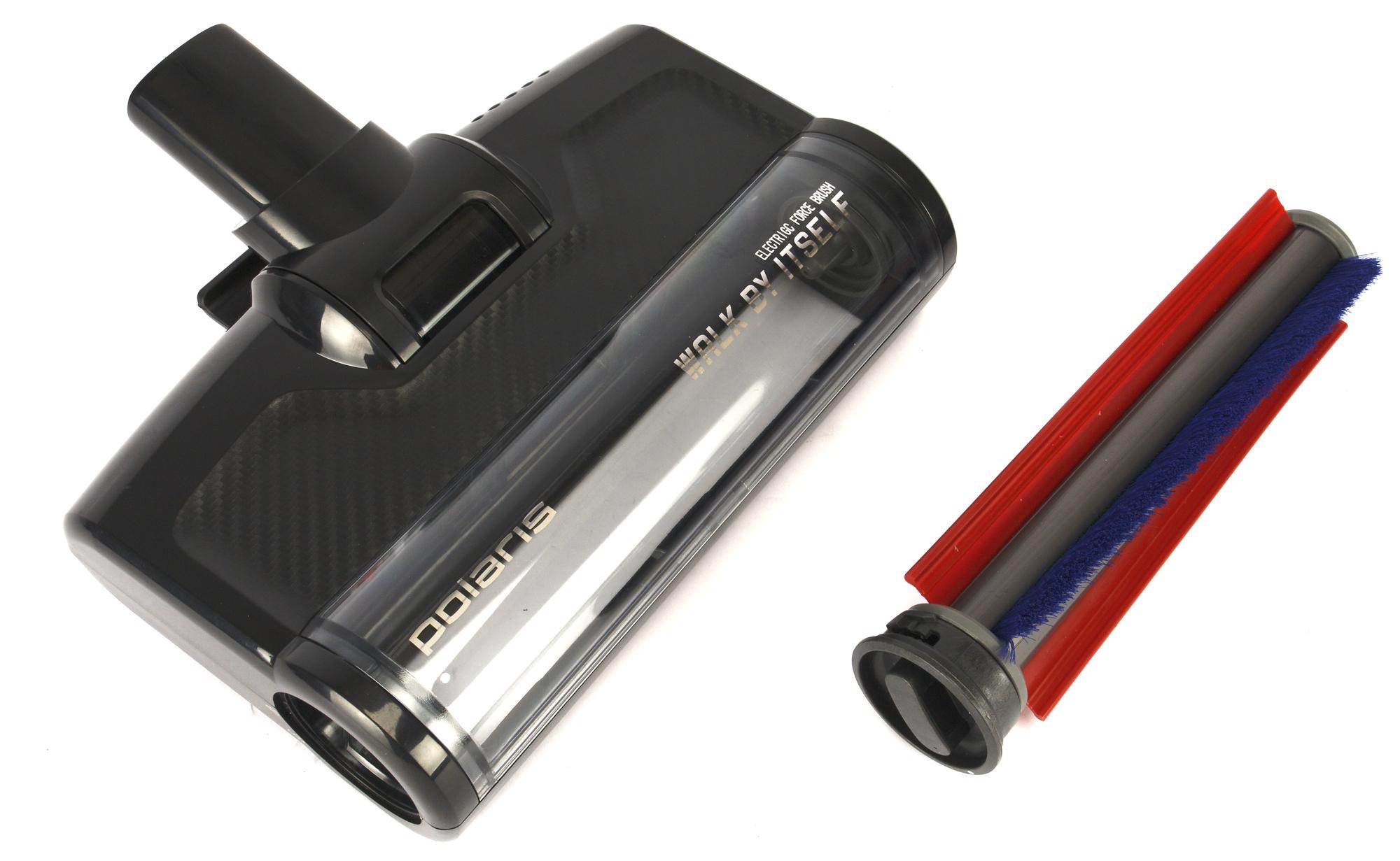 Для сухой уборки пола есть электрощетка с валиком с жесткими щетинками, для влажной — специальный модуль с двумя мягкими роторами. При работе вода смачивает и промывает их, она подается автоматически. Грязная вода вместе с всасываемым мусором поднимается наверх и накапливается в специальном резервуаре.
