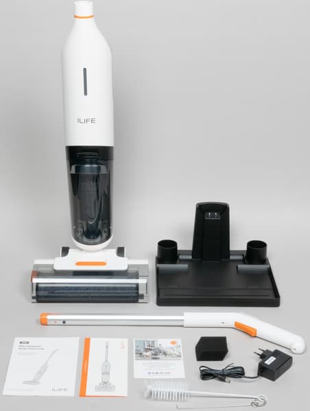 Готовый к мытью прибор весит 3170 г, не очень много, потому что отличается по конструкции от всех остальных моделей в этом обзоре. Измеренная нами мощность всасывания составила 59,8 аВт. Время автономной работы оказалось больше, чем заявлено: 55 минут. Уровень шума — не самый высокий, как и обещано.