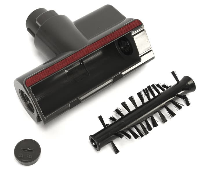 Насадка для сухой уборки полов имеет два сменных ротора для разных типов покрытий. Для чистки мягкой мебели предусмотрена электрощетка. Среди других насадок (для корпусной мебели, щелевая) есть и насадка для вычесывания животных.