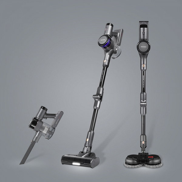 Модель 3-в-1 умеет подметать, чистить мягкую мебель и мыть полы. Время автономной работы до 80 минут, мощность всасывания 110 аВт.
