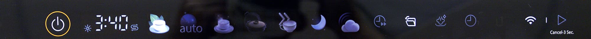 Настройка жесткости воды у этой модели производится длинным (5 секунд) нажатием на кнопку «Облачная программа». По умолчанию установлено среднее значение H3, последовательными нажатиями на сенсор можно изменить его в диапазоне от H1 (очень мягкая вода, смягчитель отключен) до H6 (очень жесткая вода).