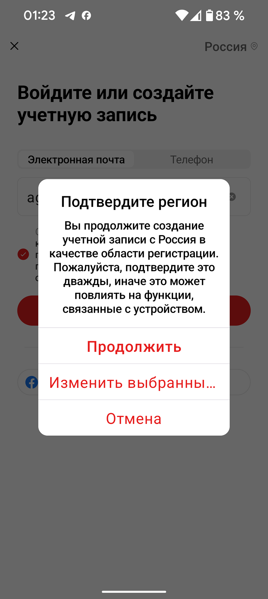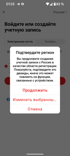 Первое, что следует сделать после установки — выбрать регион использования и создать аккаунт с подтверждением адреса электронной почты или мобильного телефона. Региональные настройки нужно выбирать ответственно: после регистрации изменить их нельзя.