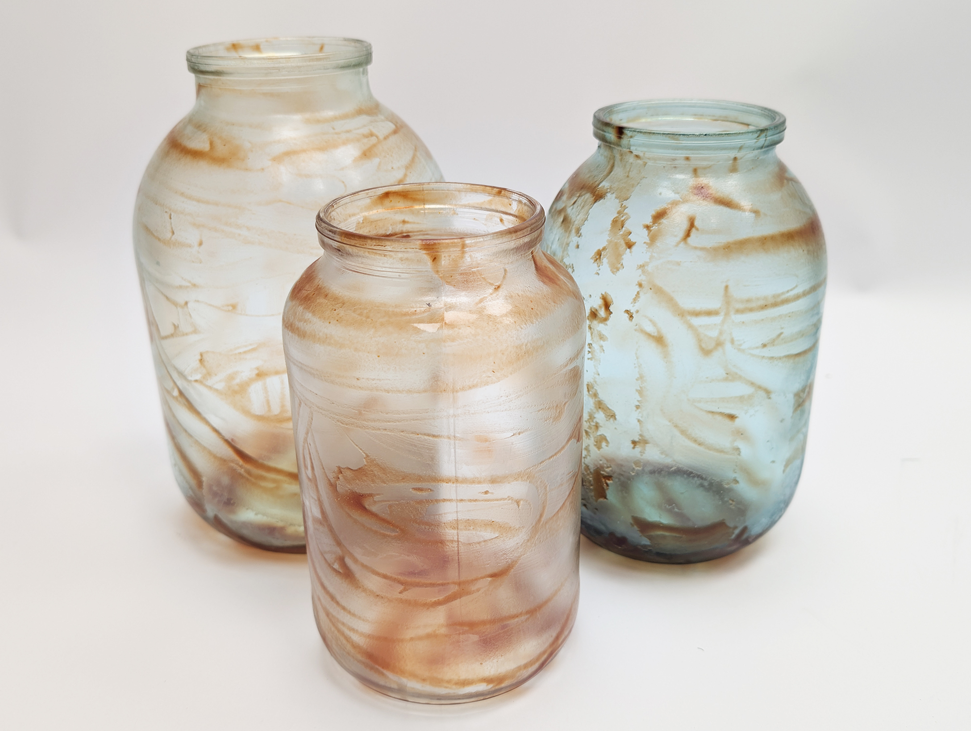 Три стеклянных банки — трехлитровую и две двухлитровых — мы испачкали изнутри кетчупом и оставили на сутки для высыхания загрязнений.