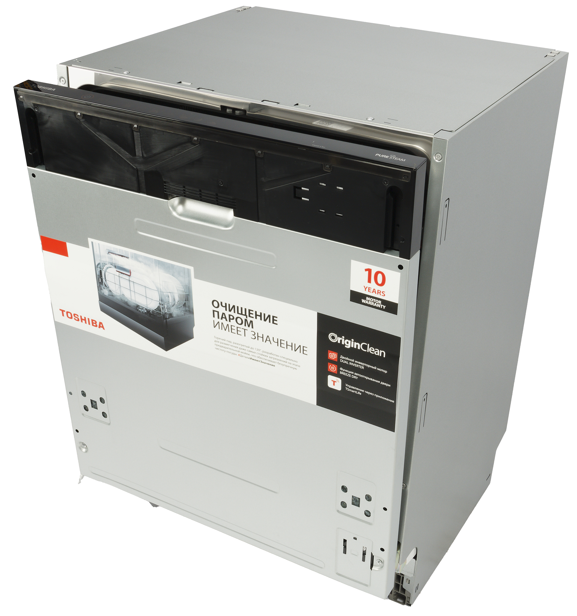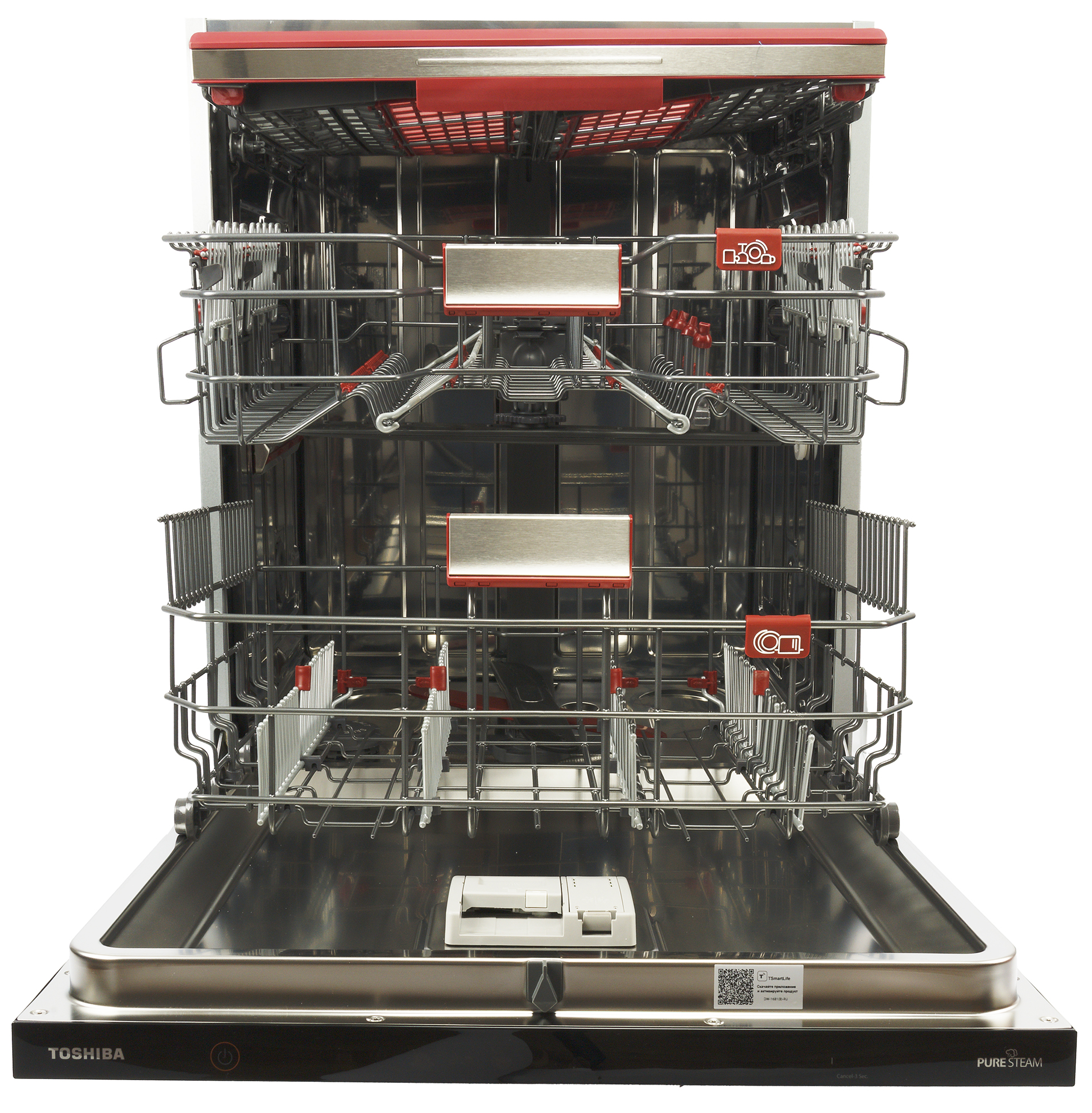 Полноразмерная посудомоечная машина Toshiba DW-16B1(B)-RU, с которой мы познакомим вас сегодня, оснащена тремя корзинами для посуды и столовых приборов, оборудована внутренней подсветкой и функцией обработки паром и может управляться с помощью мобильного приложения.