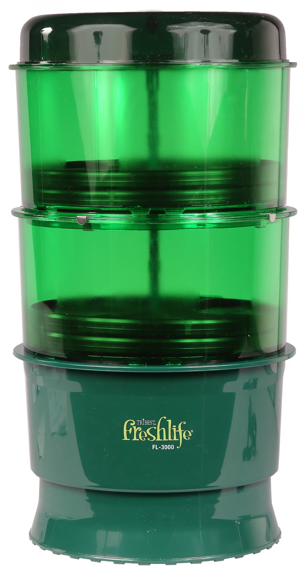 Спраутер Tribest Freshlife FL-3000 — весьма простой по устройству прибор, и производитель этого не скрывает. В сборке он представляет собой высокую, в несколько этажей, кастрюлю с разбрызгивателем. Цвет прибора — темно-зеленый, пластмасса контейнеров для проращивания и крышки прозрачная, в отличие от материала нижнего этажа — поддона для воды. Это вполне логично: верхние части прибора должны быть светопроницаемыми. Никакого штатного освещения внутри спраутера нет.