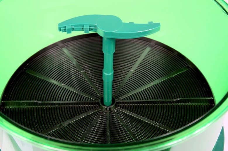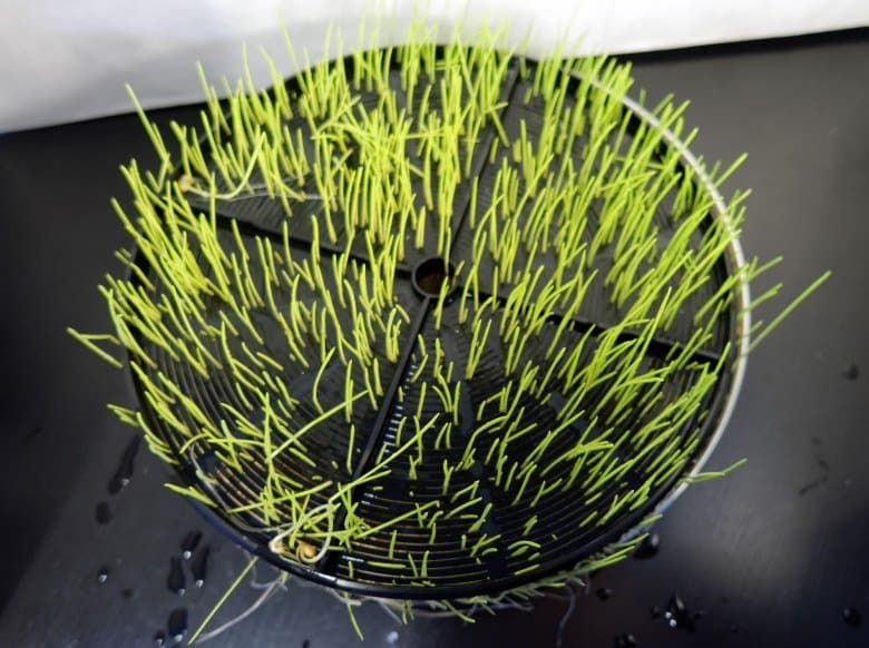 Чтобы помыть части устройства, достаточно теплой проточной воды и обычной щетки с длинными пластиковыми щетинками. С помощью последней мы прочищали отверстия в дисках. Склизкая субстанция на бортах и дне резервуара для воды легко смывается голыми руками. Уход за прибором не требует особого подхода, все части довольно легко моются. Чуть дольше нам пришлось повозиться с дисками из-за застрявших в них частей зерен и ростков — но и эту проблему с помощью щетки мы решили довольно быстро. На весь процесс тратится от пяти до десяти минут в зависимости от задумчивости оператора.