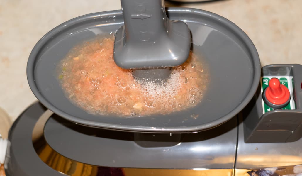 Как и все шнековые соковыжималки, работает прибор неспешно. Также требуется подготовка сырья перед отжимом сока. В основном мы имеем в виду нарезку, облегчающую попадание кусочков между шнеками. Нарезать следует, по возможности, на тонкие длинные ломтики.