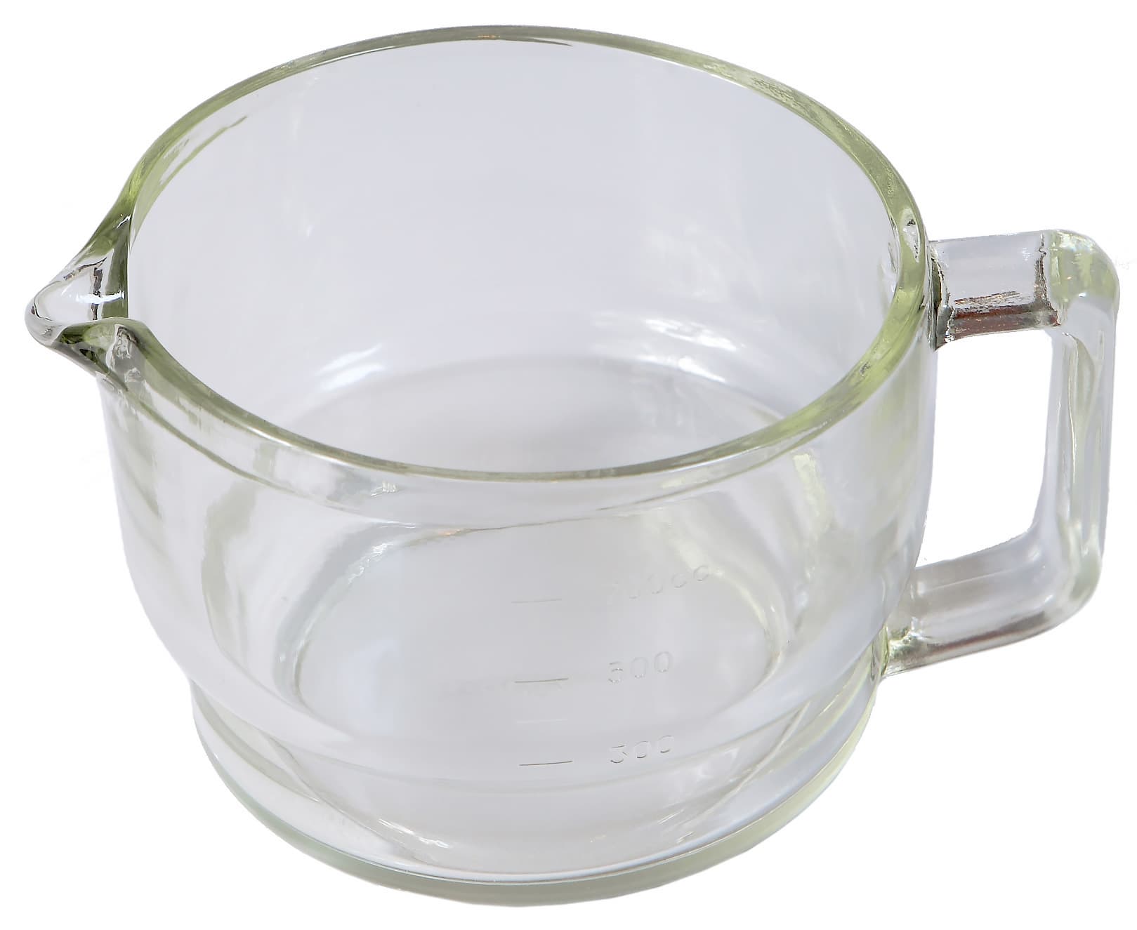 Стакан для сока изготовлен из стекла. Толщина стенок — 5 мм. Оснащен ручкой и носиком для слива сока. На одной из сторон нанесены метки объема от 300 до 700 мл с шагом в 100 мл.