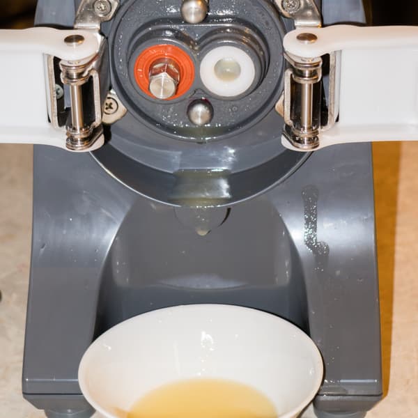 В целом, финальная очистка прибора довольно трудоемка: много аксессуаров, мелких деталей сложной формы, мелкие сетки и запрет использовать посудомоечную машину. Во время отжима соков в течение дня, или отжима сока из разных фруктов и овощей можно применять метод экспресс-очистки. Для этого следует снять регулятор, поставить под отверстие выхода сока и жмыха большие емкости, залить в воронку 1 литр воды во время работы прибора. Вода промывает шнеки и все отверстия от остатков продуктов. Однако в конце дня прибор должен быть обязательно разобран и очищен более основательно.