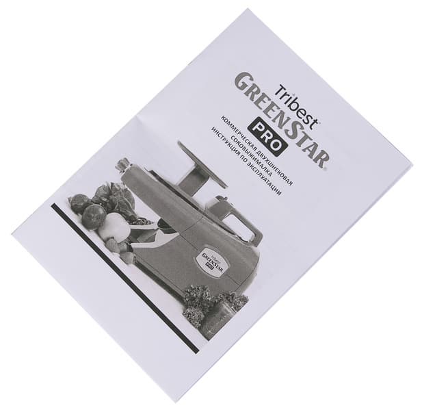 Руководство по эксплуатации на русском языке представляет собой 22 страничную брошюру формата А5, напечатанную на обычной бумаге. Сначала пользователя знакомят с особенностями и уникальными свойствами приобретенной соковыжималки. Затем — с мерами безопасности при эксплуатации. Наглядно и понятно описана конструкция прибора. Это особенно важно, потому что на первый взгляд она кажется очень сложной, в особенности после распаковки и разглядывания многочисленных деталей и аксессуаров.