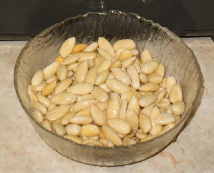 Миндаль очищенный — 100 г, сахар — 150 г, вода — 40 мл, миндальная эссенция — 1 ст. л., шоколад горький