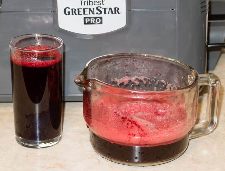 Сок тек ровно, почти без пены. Никаких затруднений твердый и жесткий корнеплод не вызвал. Вес полученного сока составил 438 г. Таким образом, эффективность отжима — порядка 70%.