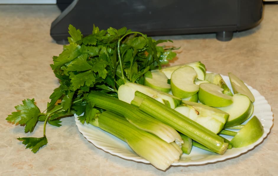 Сок из зелени петрушки, стеблевого сельдерея и яблока