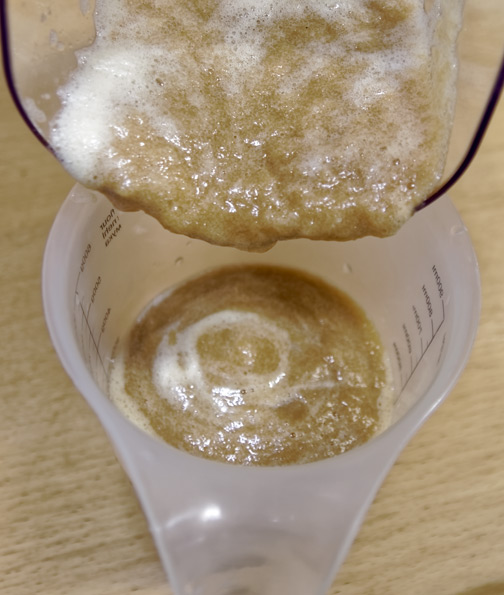 Жмых практически сухой. В процессе отжима образовалась обильная пена, для отсева которой мы воспользовались специальным ситом с ручкой, входящим в комплектацию.