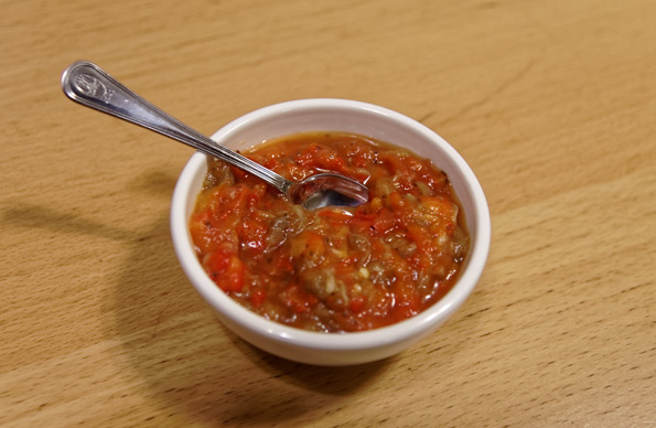 Похоже, что инженер, который придумал добавить в комплект к соковыжималке измельчитель, родился в Одессе, потому что консистенция полученной с ее помощью овощной икры (кабачковой, баклажанной) оказалась таки идеальной. Мы до почернения кожицы запекли на противне несколько баклажанов, перцев и помидоров, очистили с них кожуру и вместе с чесноком пропустили через измельчитель. Посолили — да, это то, что надо: не гомогенно, как в блендере, и не бесконечно долго, как нарезать руками. И очень вкусно :)