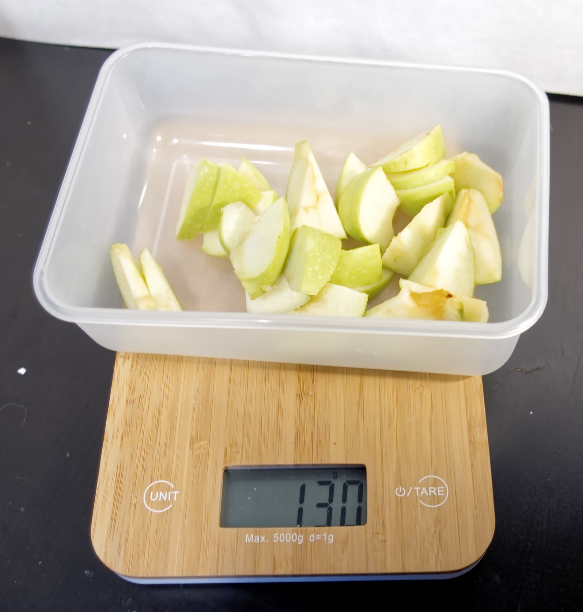 Вес долек яблока: 130 г.