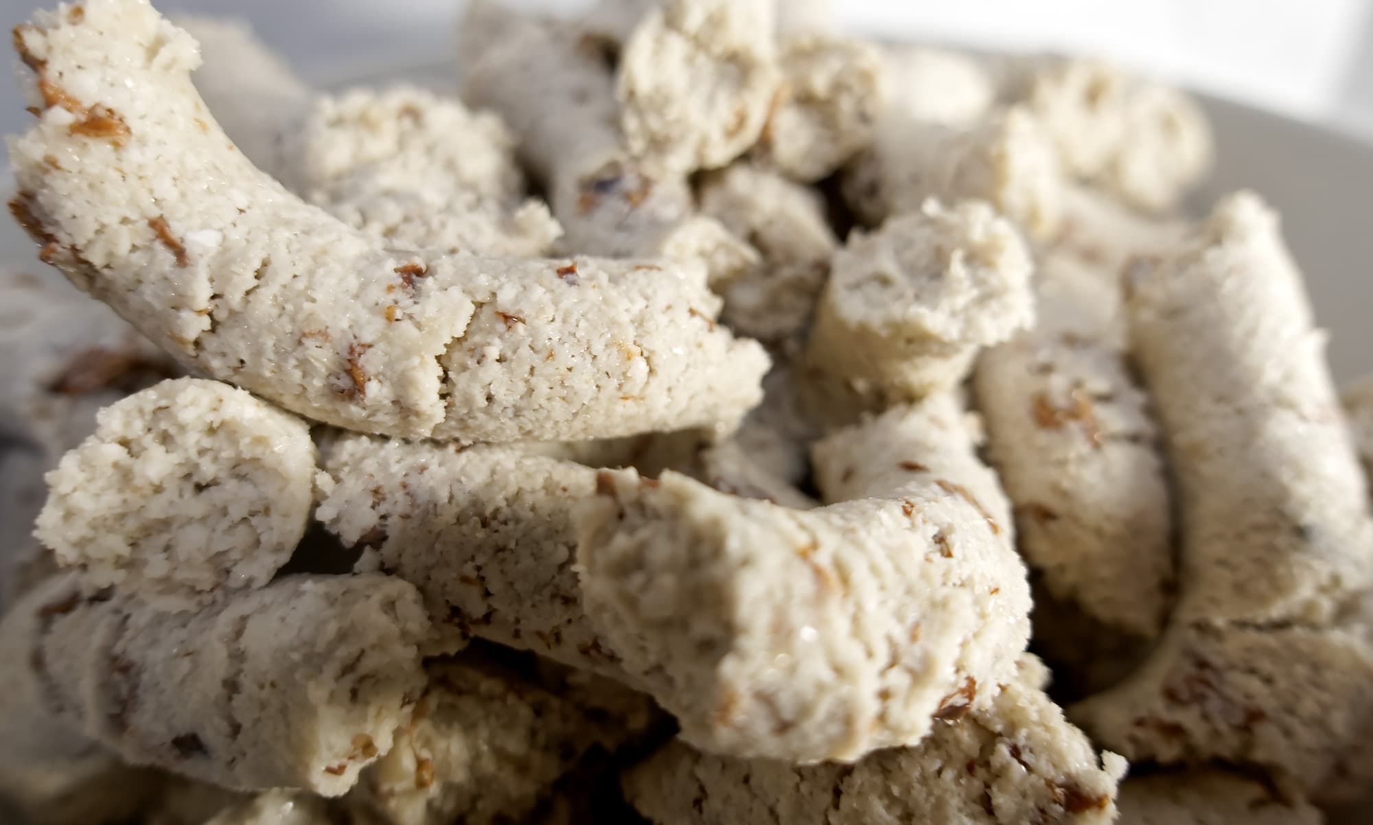 Мы сделали тесто для яичной рисовой лапши, разделили его на несколько частей и затем прогнали через Tribest Z-710, воспользовавшись насадкой для феттучини.