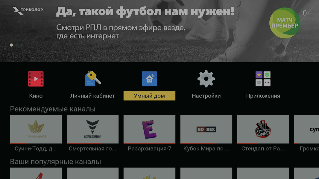 Следующий шаг — подключение периферийных устройств. Этот процесс может производиться двумя способами: непосредственно на телевизоре пультом ДУ ресивера или с помощью мобильного приложения «Триколор Умный дом» (версия для Android, версия для iOS).