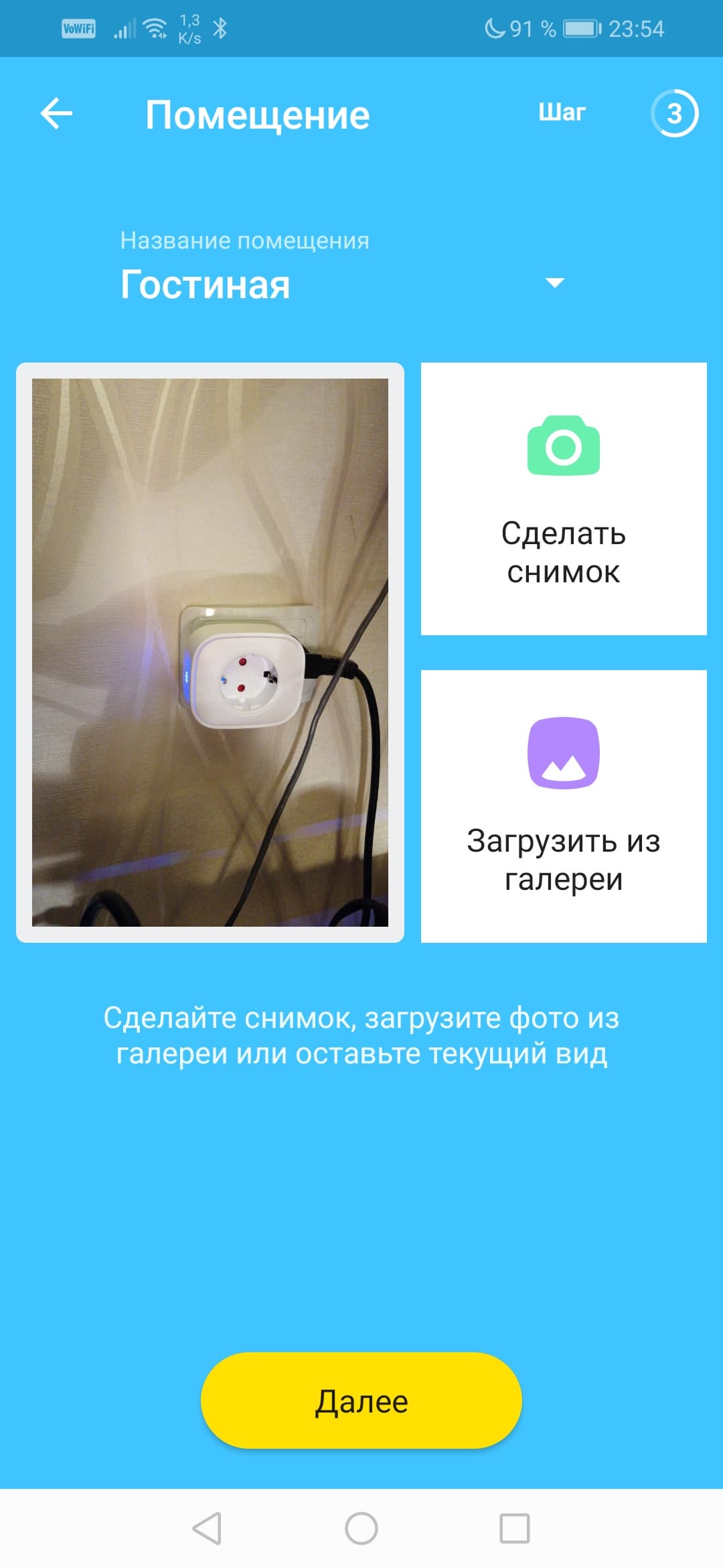 Этот способ подключения надежен и прост, но все же добавление устройств в мобильном приложении имеет некоторое преимущество. Оно заключается в более гибком оформлении подключаемого гаджета. Так, при подключении можно сделать фотоснимок устройства камерой смартфона. Этот снимок впоследствии будет играть роль визитной карточки гаджета, по которой легко определить его местоположение. Если у вас несколько умных розеток располагаются одной комнате, то можно их, конечно, назвать «Розетка в дальнем углу» или «Розетка около двери». Но все-таки проще сфотографировать эти розетки и в дальнейшем ориентироваться по снимкам.