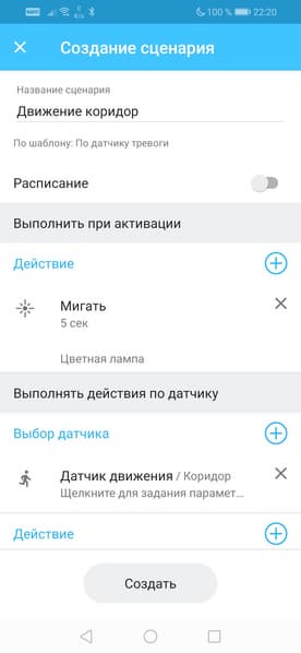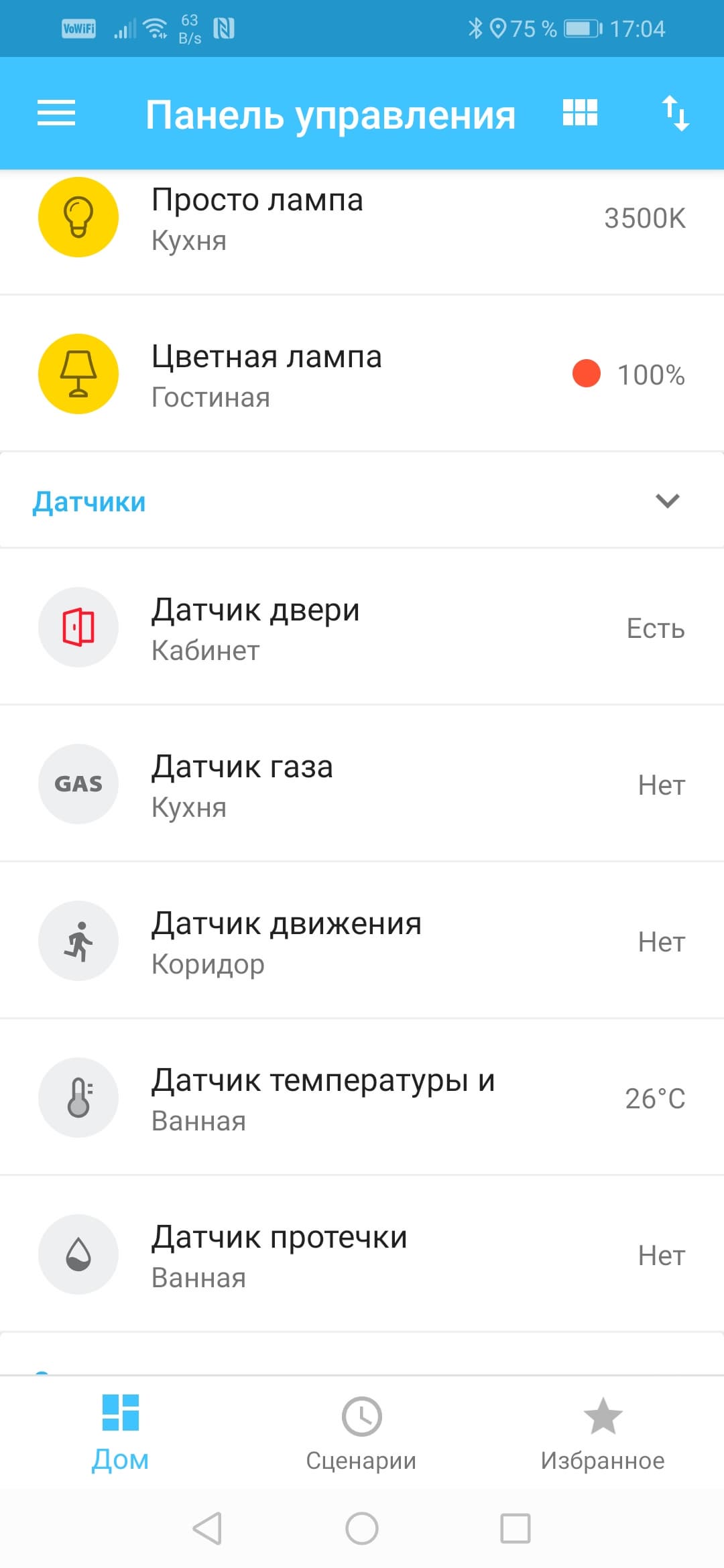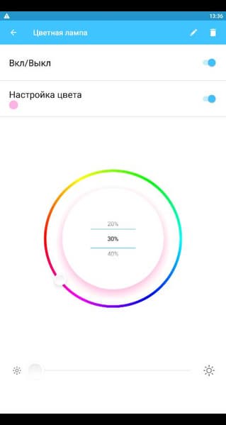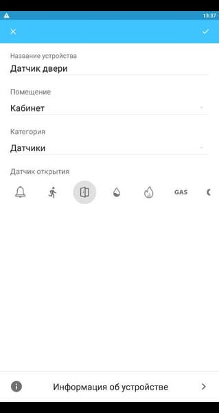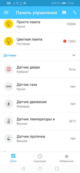 Каждый датчик обладает довольно скудным набором настроек. Впрочем, их, можно сказать, почти нет. Разве что у ламп имеются настройки яркости, температуры или цвета.