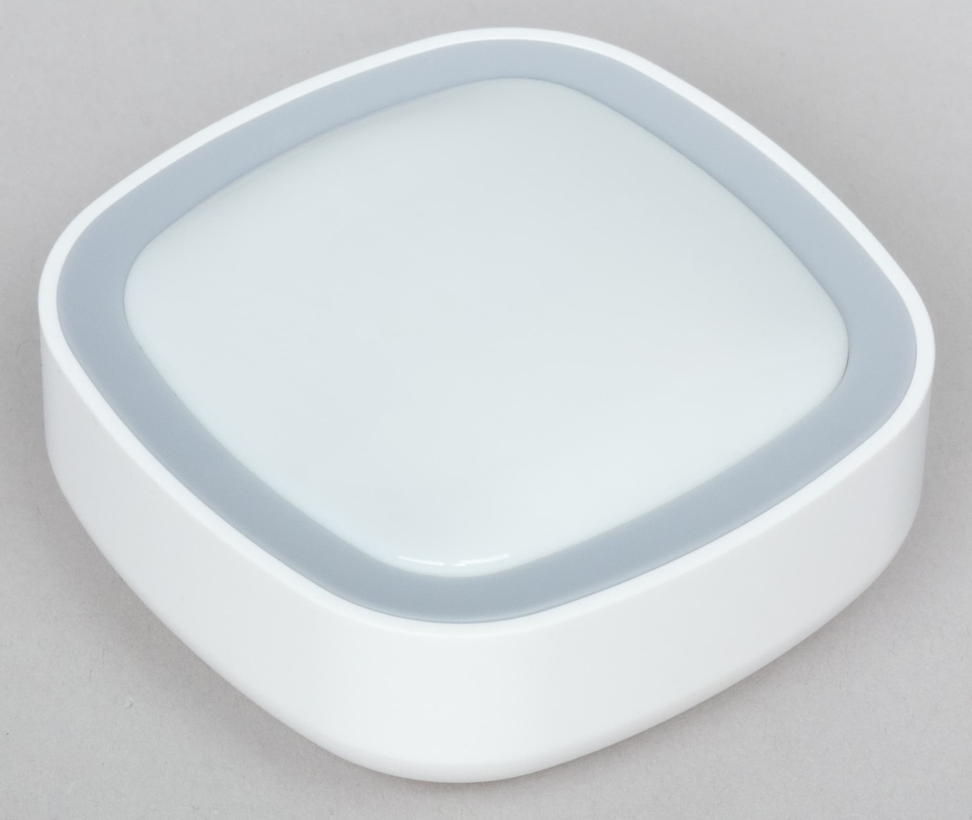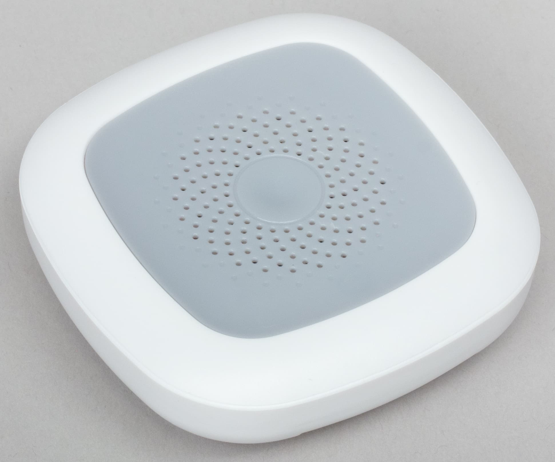 Дизайн датчика выдержан в знакомом стиле, матовый белый пластик с серой вставкой. Лицевая панель содержит множество конвекционных отверстий, через которые к датчику проникает контролируемый воздух.