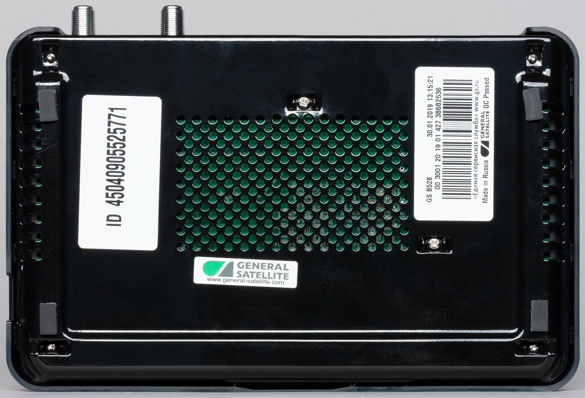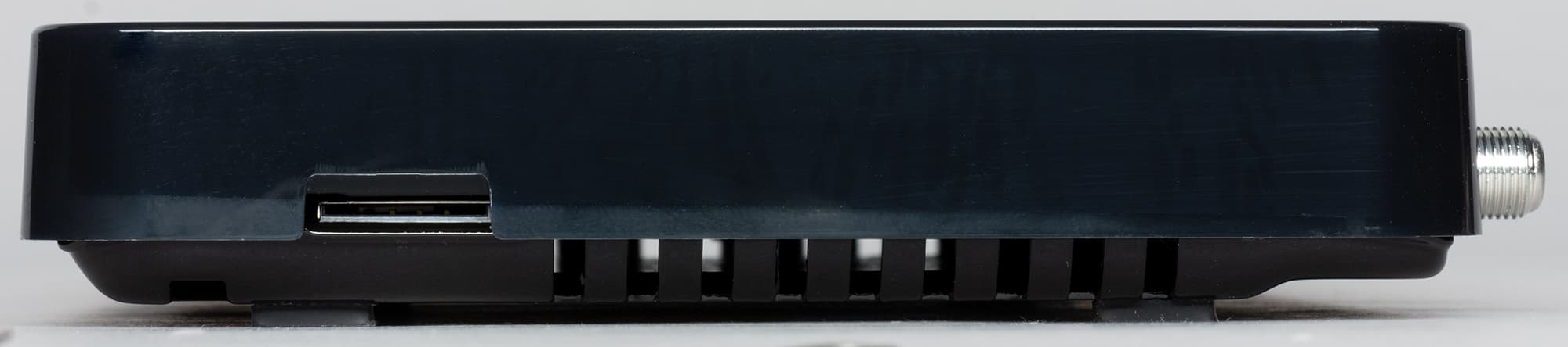 Днище аппарата испещрено вентиляционными отверстиями, их необходимость вызвана наличием двух тюнеров и электронных компонентов, осуществляющих обработку 4K-сигнала. Все эти компоненты требуют немало энергии для своей работы, а значит, могут выделять значительное количество тепла.