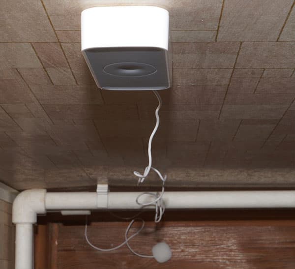 Основное устройство можно прикрепить рядом с раковиной, ванной, душевой кабиной и т. д., а детектор приклеивается к полу контактами вниз. Желательно выбирать место, где протечка воды наиболее вероятна.
