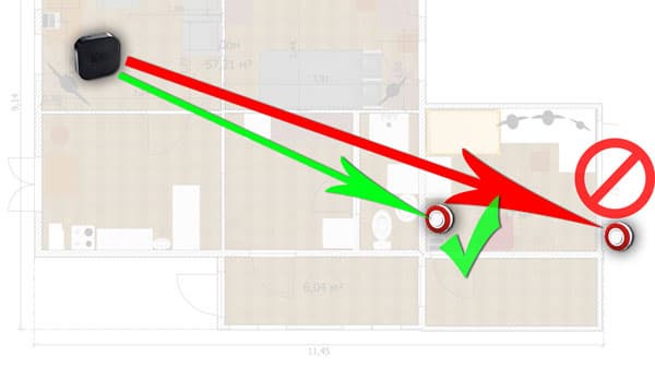 Не слишком ли много внимания уделяется расположению датчиков относительно модуля управления и зачем приводить эти практические примеры с настоящими планами настоящего дома? Затем, что радиус действия сигнала датчиков является критически важным параметром. Это причина, которая может перечеркнуть саму возможность эксплуатации всей системы.