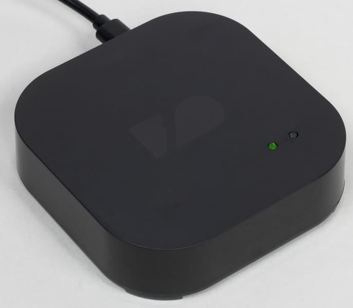 Этот центральный хаб, организующий работу всех датчиков, раскиданных по помещениям, представляет собой небольшую коробочку с двумя светодиодными индикаторами и без каких-либо органов управления. В комплекте с модулем имеется подробное руководство пользователя на русском языке и короткий кабель USB—Micro-USB. Он предназначен для подключения к цифровому ТВ-приемнику. Получая по нему питание, хаб также обменивается данными с приемником.