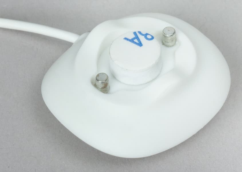 Устройство состоит из двух модулей: датчик, в котором размещены все электронные и радиокомпоненты для связи с базой (хабом), плюс вынесенный на длинном (1,2 м) гибком проводе внешний детектор.